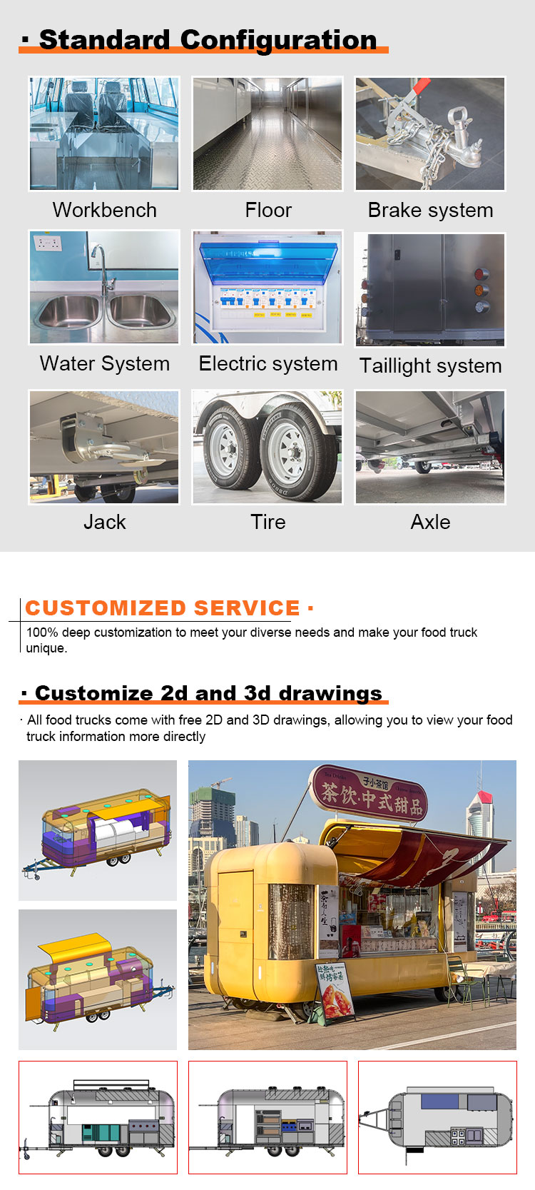 주요 소재로는 내식성과 내구성이 우수하고 다양한 환경 조건에서도 안정적인 성능을 유지할 수 있는 고품질 304 스테인리스 스틸을 사용하여 당사의 커피카트 모바일 제품이 장기적으로도 우수한 품질과 기능성을 유지하며 다양한 도전에 직면할 수 있도록 보장합니다. 304 스테인리스강은 부식에 대한 저항력이 뛰어나 트럭이 산화나 녹에 쉽게 영향을 받지 않아 수명이 크게 연장됩니다. 304 스테인리스강의 우수한 내식성은 트럭이 산화나 녹에 덜 민감하게 만들어 서비스 수명을 크게 연장시킵니다.