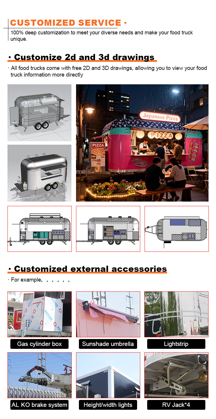 내식성과 내구성이 뛰어나고 다양한 환경 조건에서도 안정적인 성능을 유지할 수 있는 고품질 304 스테인리스 스틸을 주요 소재로 사용하여 당사의 푸드 케이터링 트레일러 제품이 장기적으로도 우수한 품질과 기능성을 유지하고 다양한 도전에 직면할 수 있도록 보장합니다. 304 스테인리스강은 부식에 대한 저항력이 뛰어나 트럭이 산화나 녹에 쉽게 영향을 받지 않아 수명이 크게 연장됩니다. 304 스테인리스강의 우수한 내식성은 트럭이 산화나 녹에 덜 민감하게 만들어 서비스 수명을 크게 연장시킵니다.
