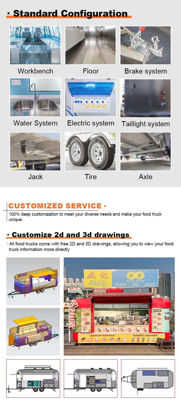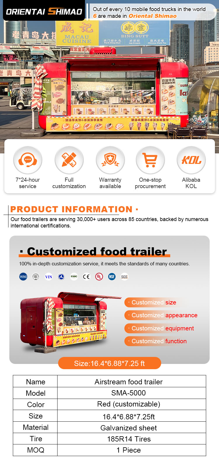 우리는 음식 케이터링 트레일러 인증을 제공할 수 있습니다: DOT, CE, SGS, SCI, ISO, COC,