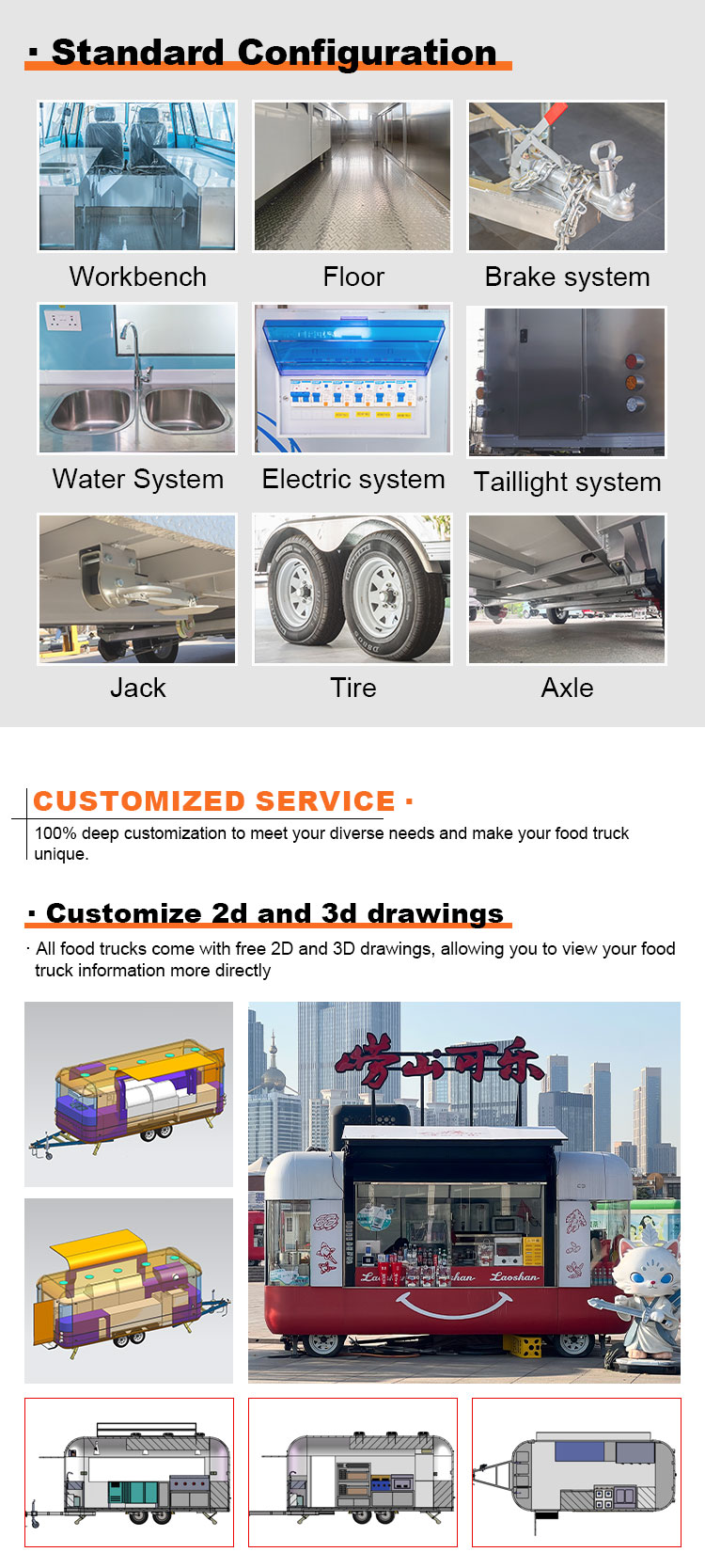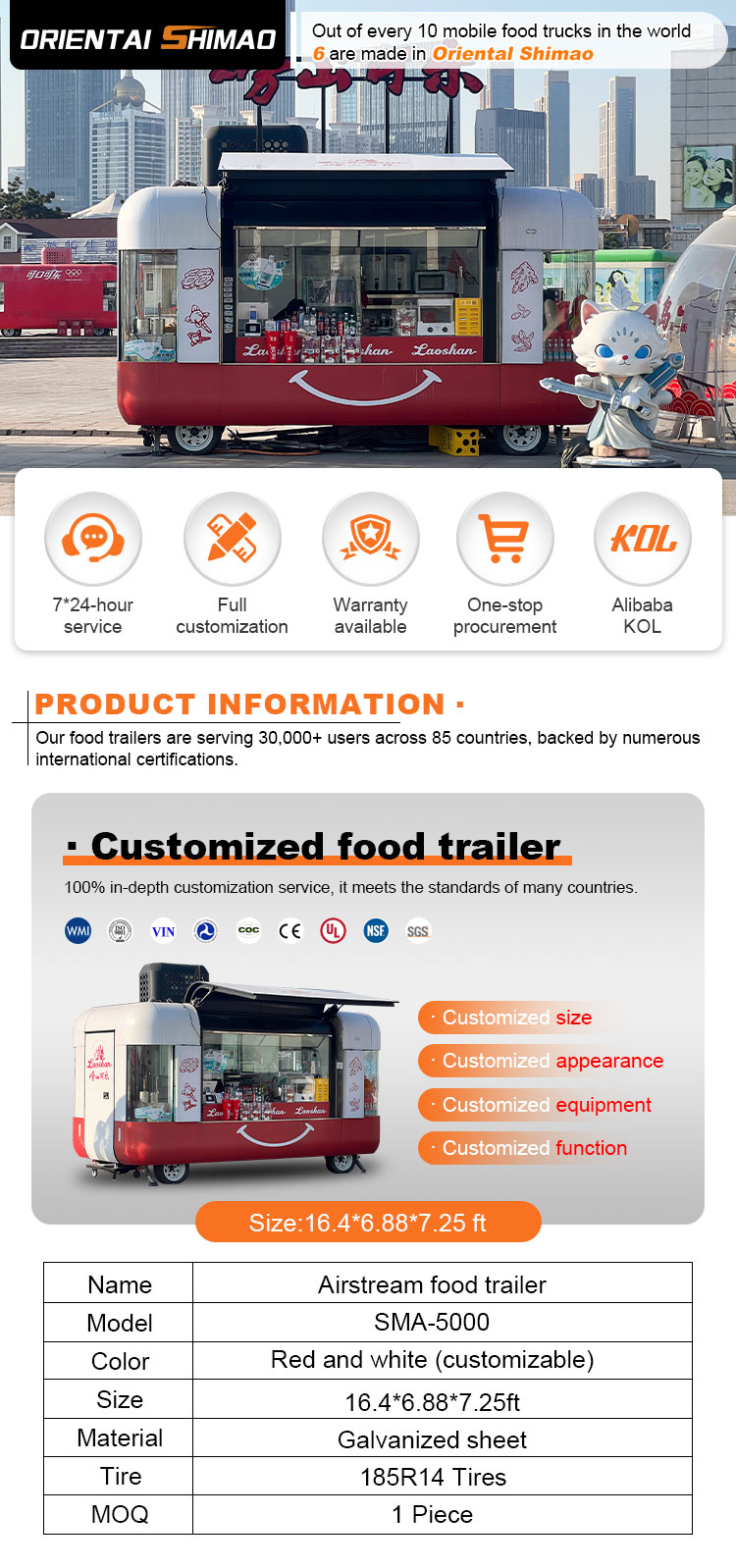 우리는 음식 케이터링 트레일러 인증을 제공할 수 있습니다: DOT, CE, SGS, SCI, ISO, COC,