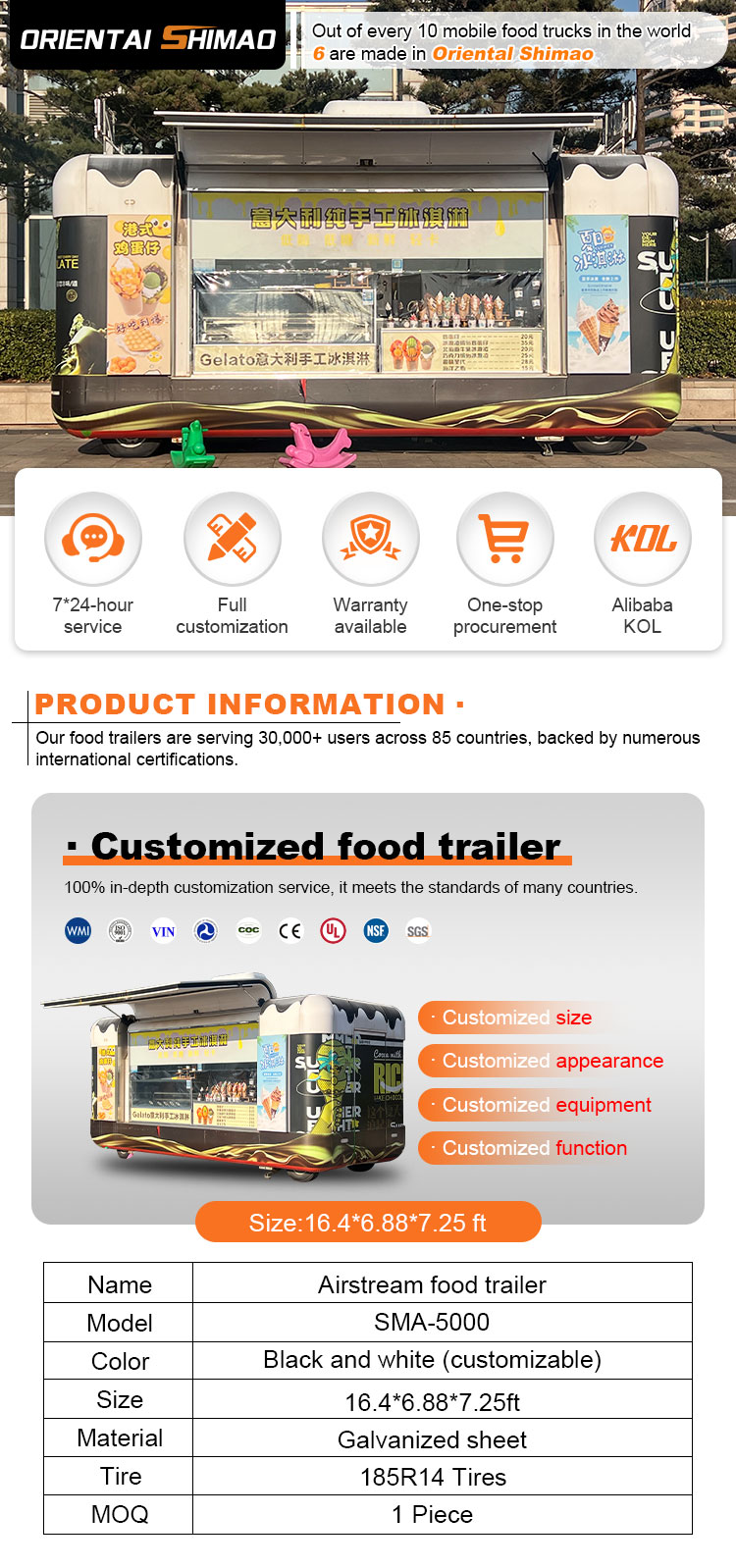 우리는 디저트 카트 인증을 제공할 수 있습니다: DOT, CE, SGS, SCI, ISO, COC,
