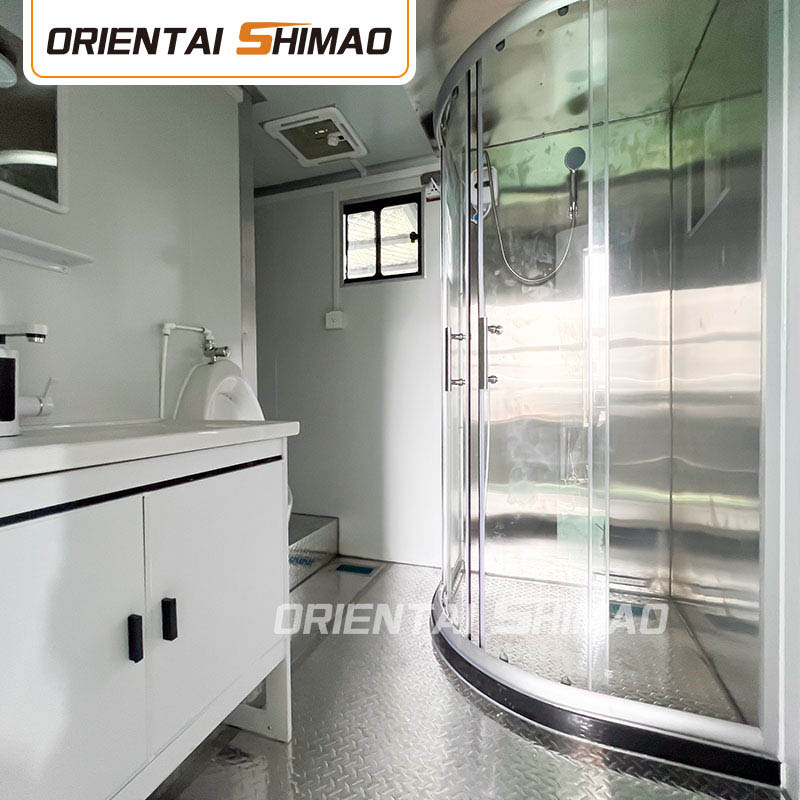 내장재 : 차량 내부의 모든 시설은 국제위생기준에 부합하는 친환경 자재로 제작되었습니다. 벽은 방수 및 곰팡이 방지 재료로 만들어져 청소 및 유지 관리가 쉽습니다. 바닥은 논슬립 PVC 소재로 제작되어 방수 및 미끄럼 방지는 물론 항균 성능도 우수해 사용자의 안전을 지켜줍니다.