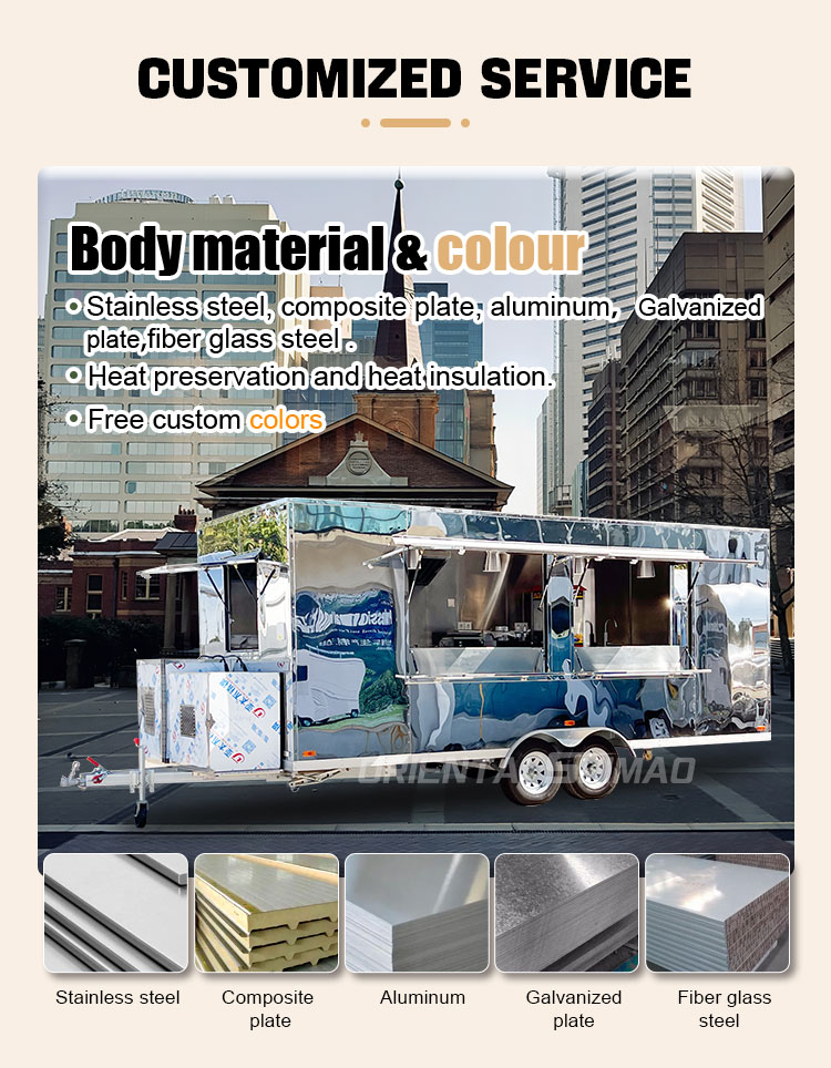 주요 소재로는 내식성과 내구성이 우수하고 다양한 환경 조건에서도 안정적인 성능을 유지할 수 있는 고품질 304 스테인레스 스틸을 선택하여 당사의 푸드캐러밴 제품이 장기적으로도 우수한 품질과 기능성을 유지하며 다양한 도전에 직면할 수 있도록 보장합니다. 304 스테인리스강은 부식에 대한 저항력이 뛰어나 트럭이 산화나 녹에 쉽게 영향을 받지 않아 수명이 크게 연장됩니다. 304 스테인리스강의 우수한 내식성은 트럭이 산화나 녹에 덜 민감하게 만들어 서비스 수명을 크게 연장시킵니다.