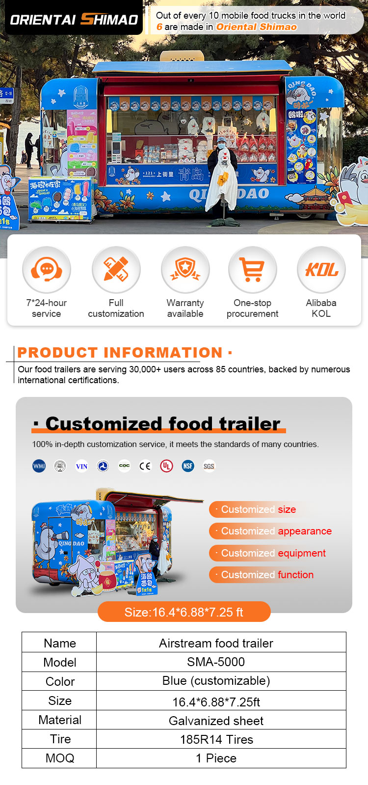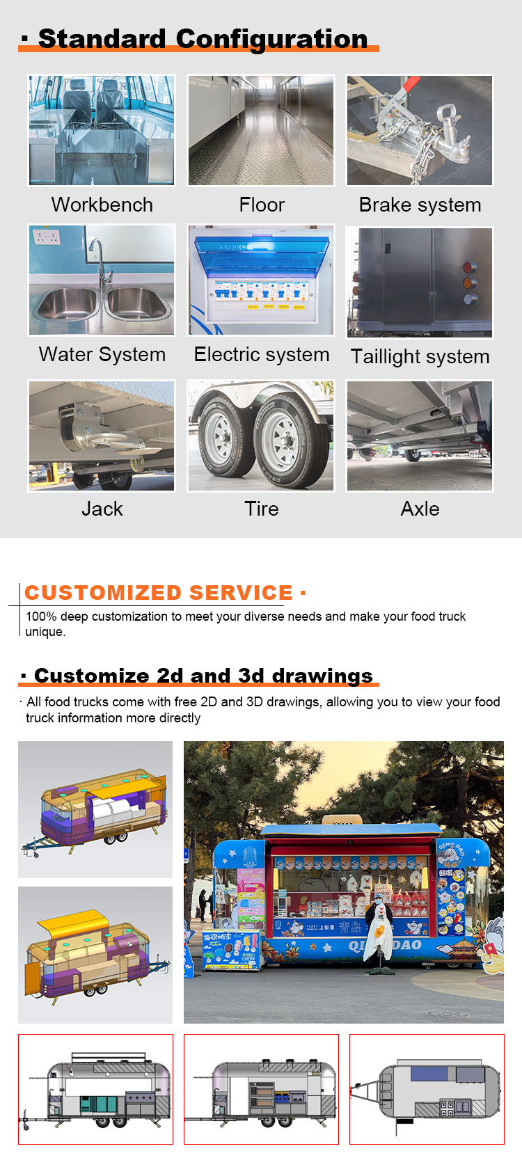 우리는 음식 케이터링 트레일러 인증을 제공할 수 있습니다: DOT, CE, SGS, SCI, ISO, COC,