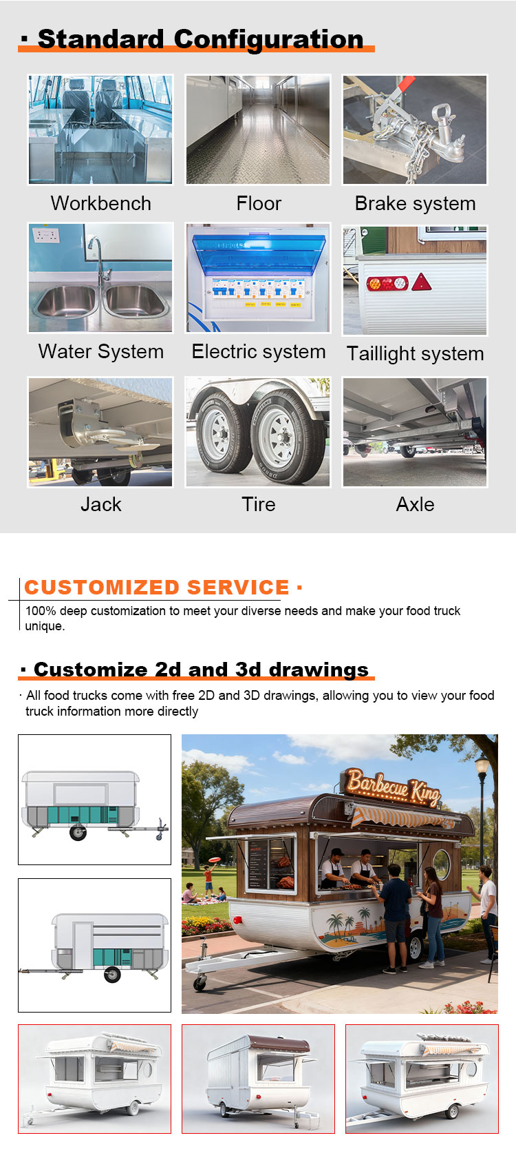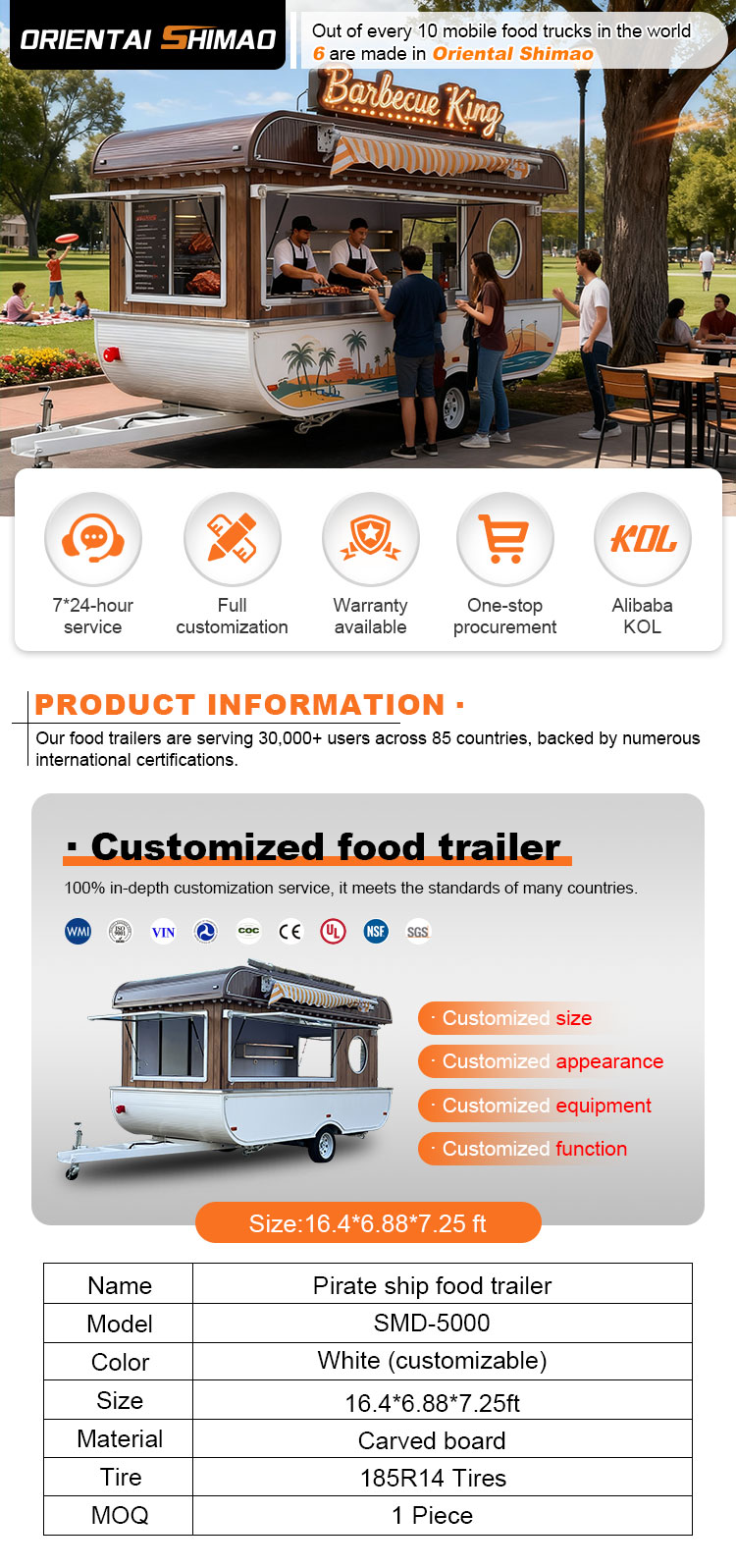 우리는 음식 케이터링 트레일러 인증을 제공할 수 있습니다: DOT, CE, SGS, SCI, ISO, COC,