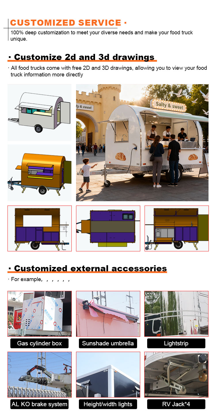 액세서리의 재질에 관해서도 우리는 스테인레스 스틸 손잡이, 경첩, 바퀴 및 기타 주요 구성 요소를 포함하여 모두 고품질 재료로 만들어진 고품질 선택을 고집합니다. 이러한 디자인은 푸드밴의 전체적인 일관성과 미학을 보장할 뿐만 아니라 내구성과 신뢰성을 더욱 향상시킵니다. 액세서리의 뛰어난 성능으로 인해 푸드밴은 사용 과정에서 더욱 안정적이고 원활하게 작동할 수 있으며, 액세서리 손상으로 인한 유지 관리 및 교체 비용도 줄어들어 사용자에게 더욱 번거롭지 않고 경제적인 사용 환경을 제공합니다.
