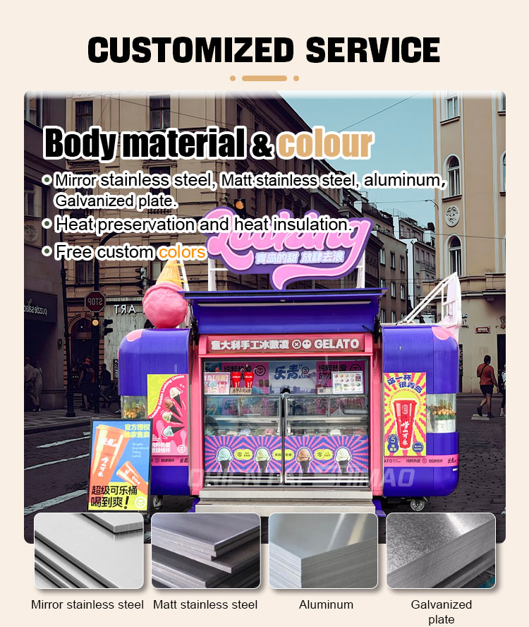 재료 및 공정: 푸드 트럭의 외관이 아름답고 내구성이 있도록 고품질 재료와 고급 제조 공정을 선택합니다.