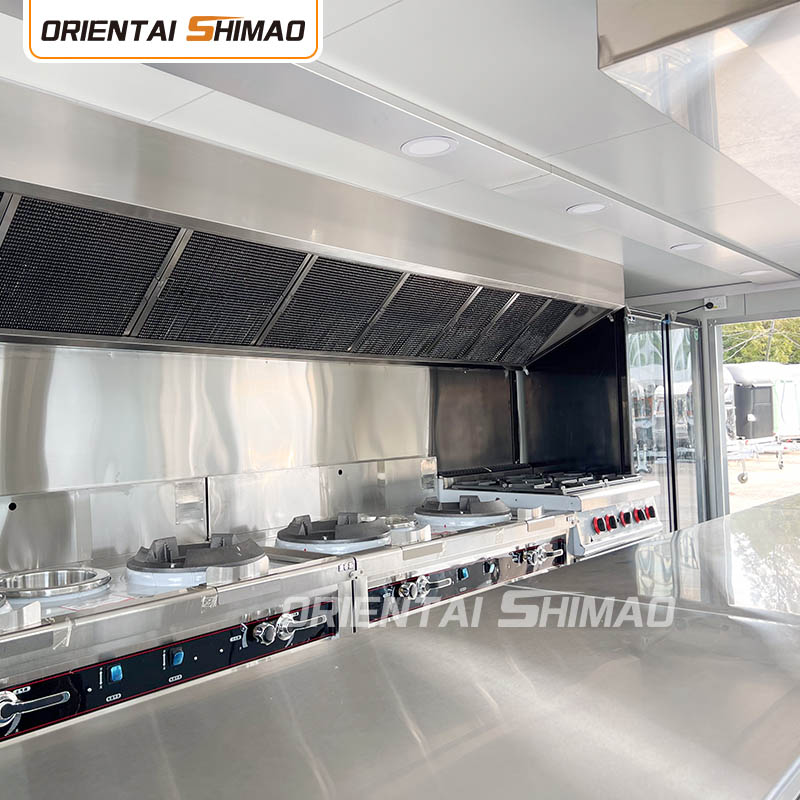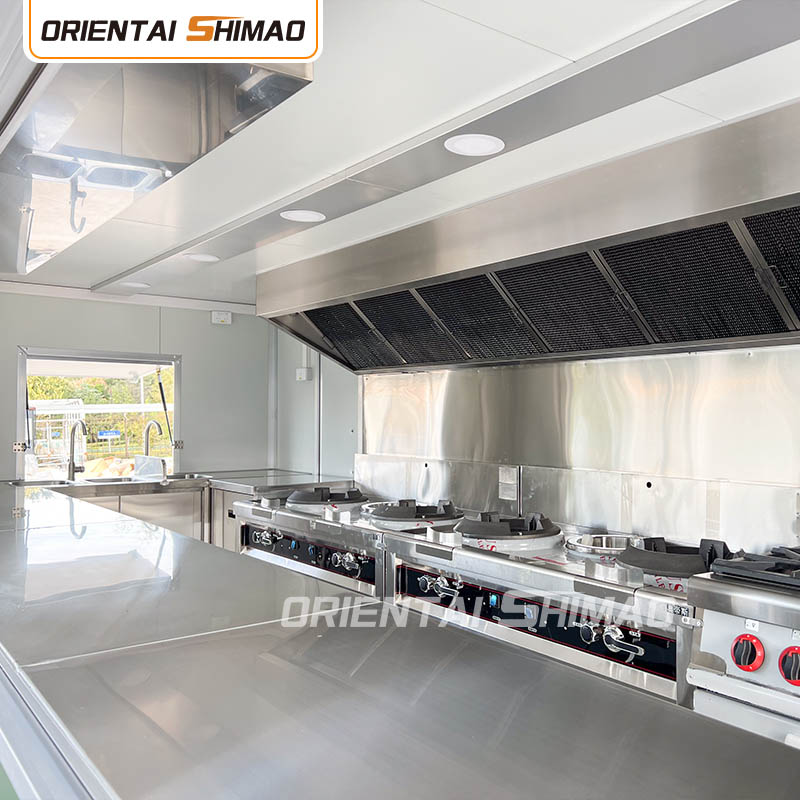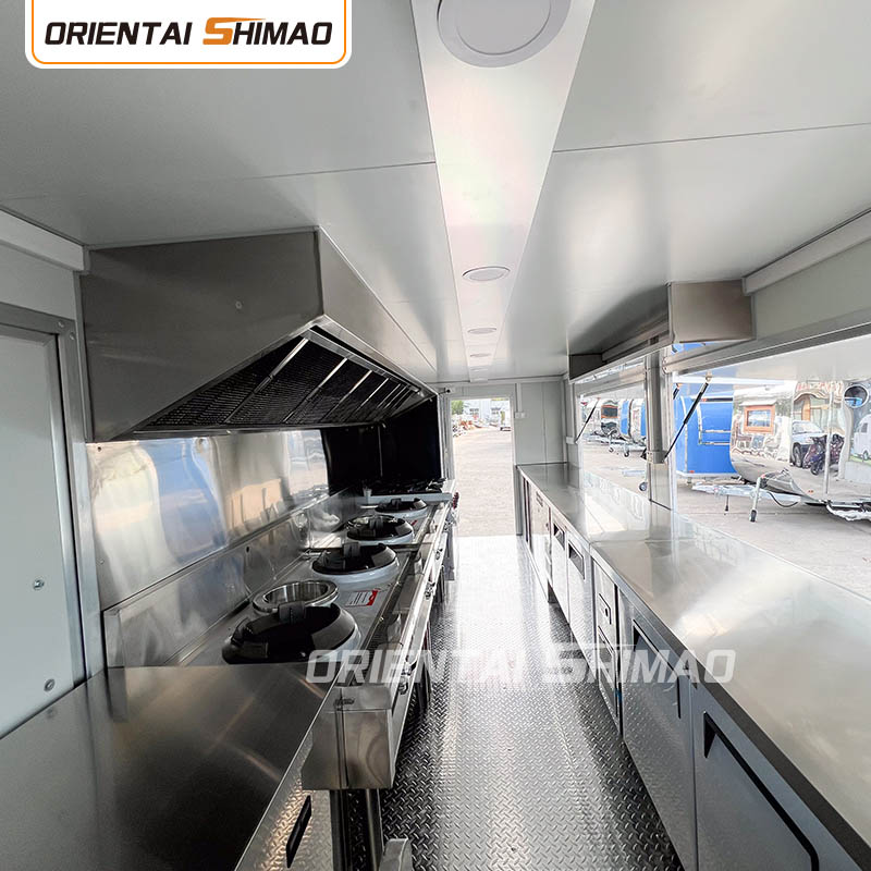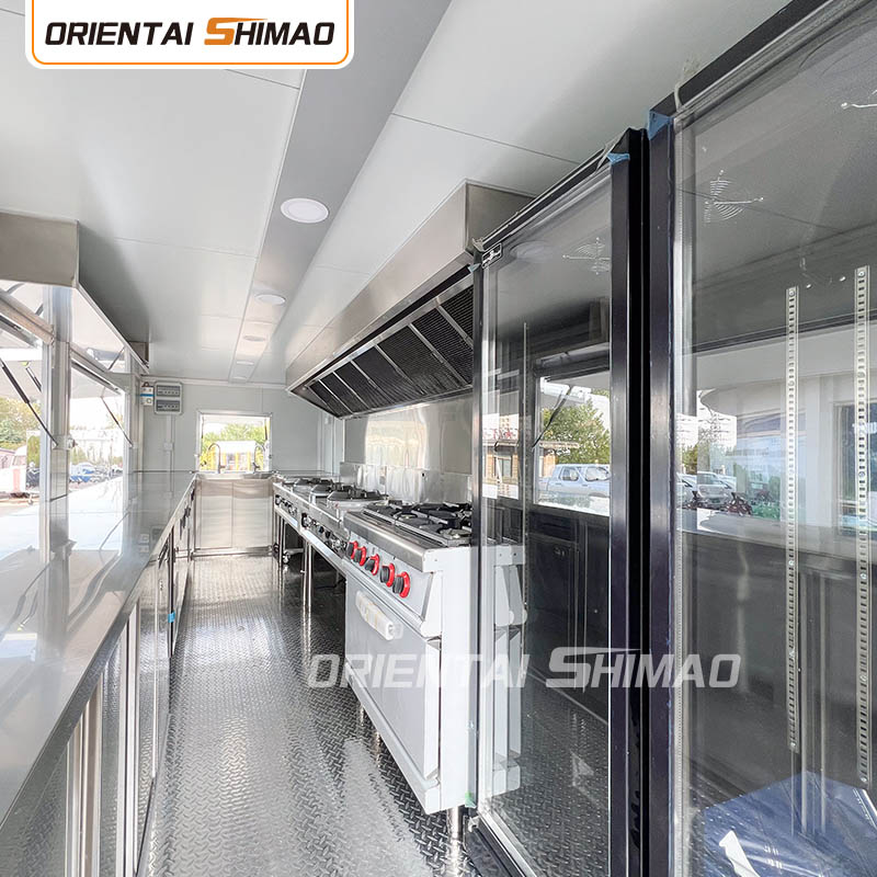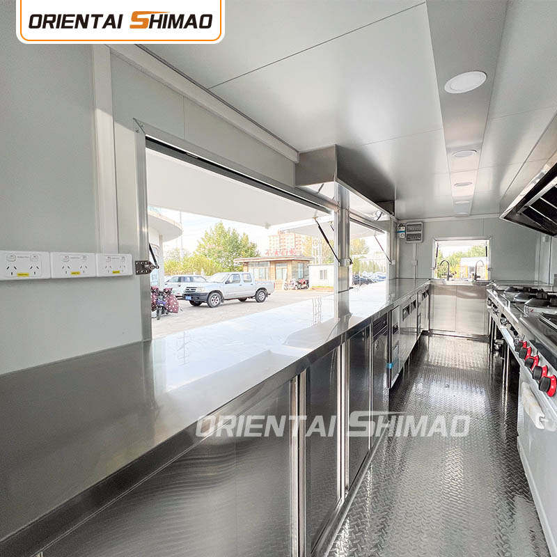 스테인레스 스틸 내부: 내부가 스테인레스 스틸로 제작되어 견고하고 내구성이 뛰어난 내부를 보장하며 청소 및 유지 관리가 쉽고 식품 위생 기준을 충족합니다. 스테인레스 스틸을 사용하면 푸드트럭의 수명이 향상될 뿐만 아니라 음식 준비 과정의 위생과 안전성도 보장됩니다.