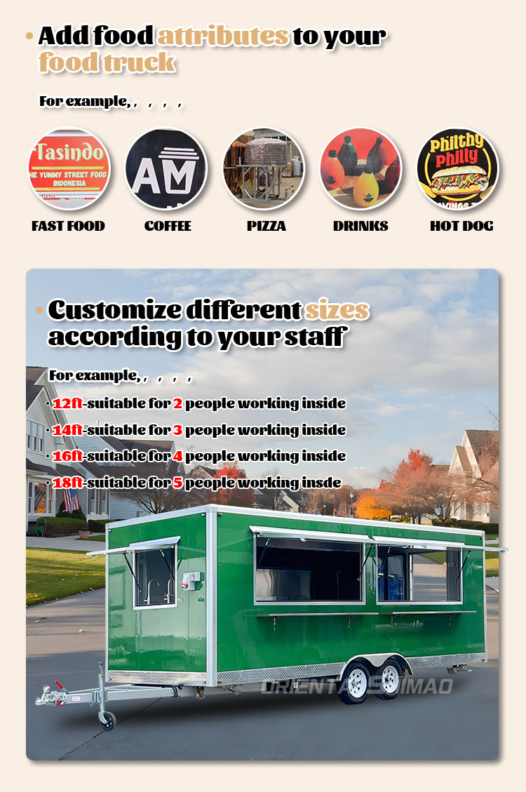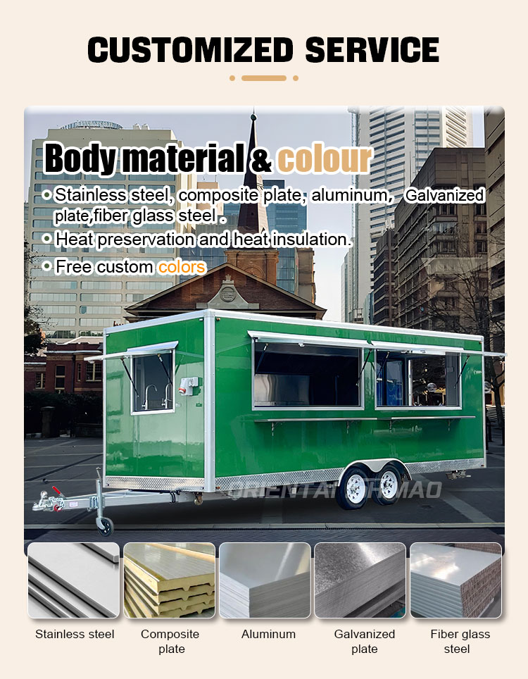 재료 및 공정: 푸드 트럭의 외관이 아름답고 내구성이 있도록 고품질 재료와 고급 제조 공정을 선택합니다.