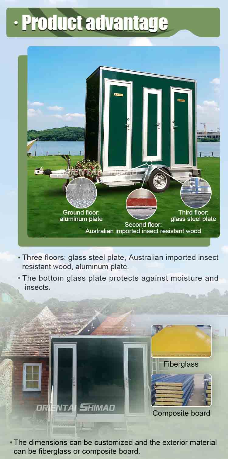 · 강력한 모바일 성능 :이 모바일 화장실에는 고성능 타이어와 강화 서스펜션 시스템이 장착되어있어 모든 종류의 지형에 쉽게 대처할 수 있으며 진흙 투성이 건설 현장이든 견고한 야외 사이트에 관계없이 안정적이고 안전하게 움직일 수 있습니다.