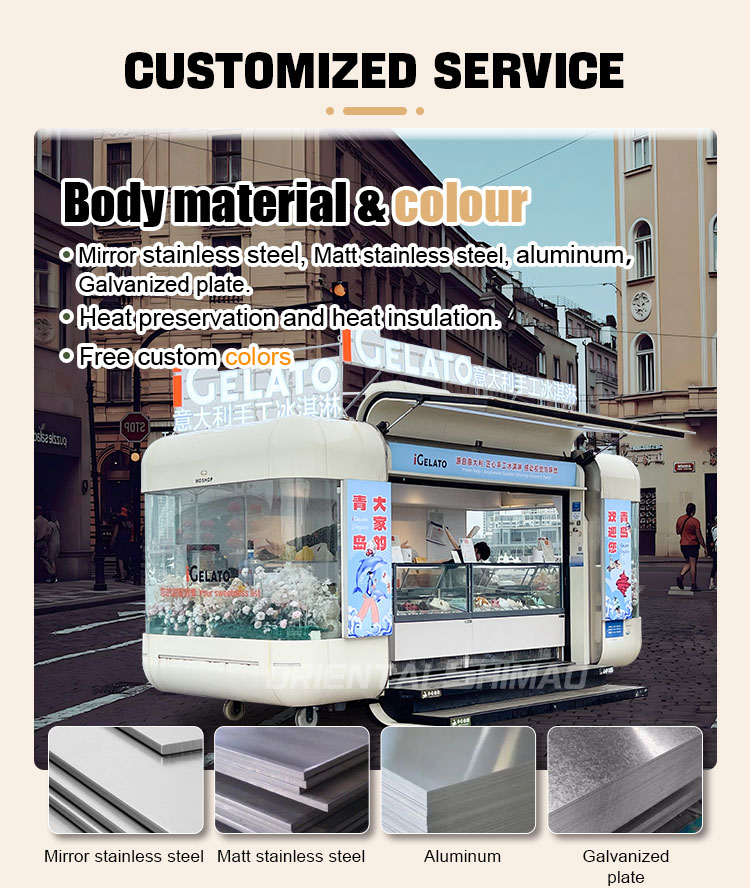 재료 및 공정: 푸드 트럭의 외관이 아름답고 내구성이 있도록 고품질 재료와 고급 제조 공정을 선택합니다.