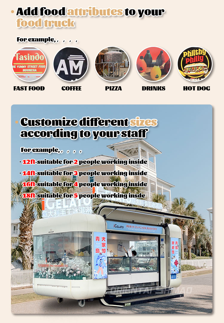 모델링 및 스타일: 푸드트럭의 외관 모델링 및 스타일은 고객을 유치하는 중요한 요소입니다. 유선형 디자인, 복고풍 스타일, 현대적인 단순성 등 고객의 브랜드 이미지, 비즈니스 특성 또는 개인 취향에 따라 맞춤 설정할 수 있습니다.