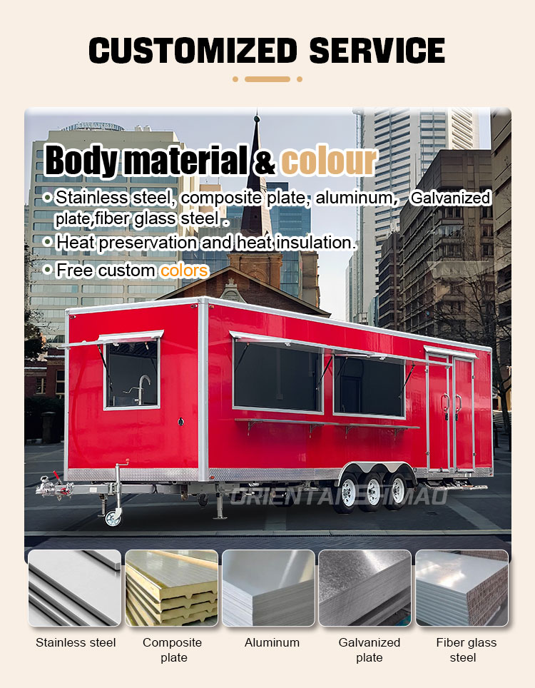 재료 및 공정: 푸드 트럭의 외관이 아름답고 내구성이 있도록 고품질 재료와 고급 제조 공정을 선택합니다.