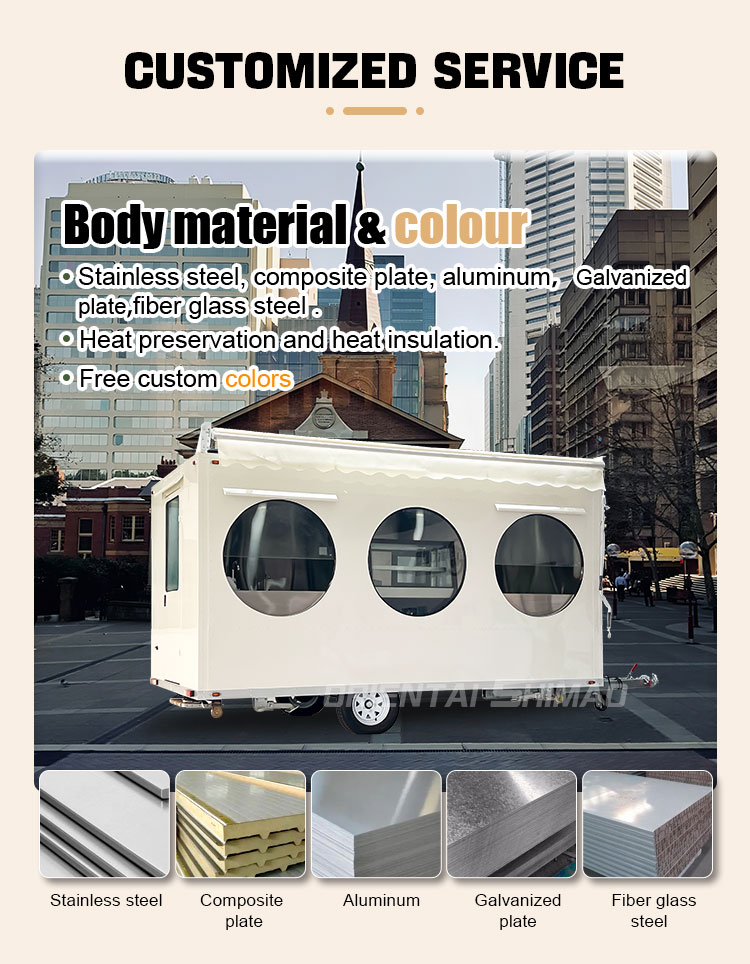 재료 및 공정: 푸드 트럭의 외관이 아름답고 내구성이 있도록 고품질 재료와 고급 제조 공정을 선택합니다.