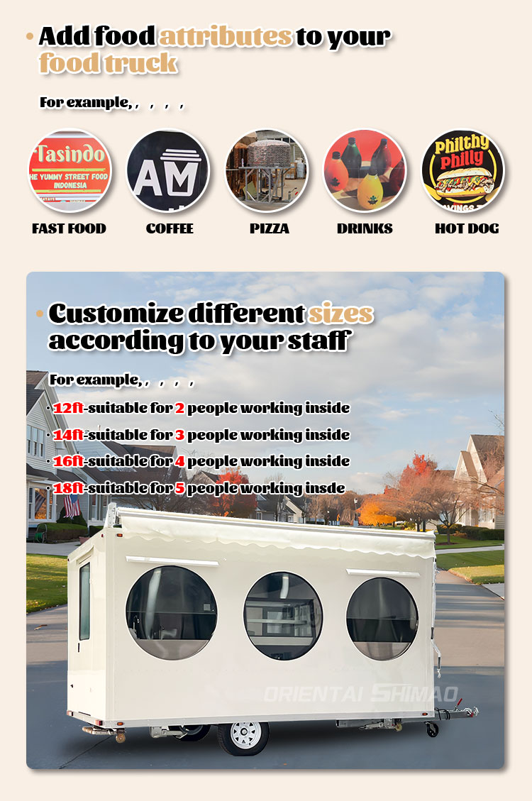 모델링 및 스타일: 푸드트럭의 외관 모델링 및 스타일은 고객을 유치하는 중요한 요소입니다. 유선형 디자인, 복고풍 스타일, 현대적인 단순성 등 고객의 브랜드 이미지, 비즈니스 특성 또는 개인 취향에 따라 맞춤 설정할 수 있습니다.
